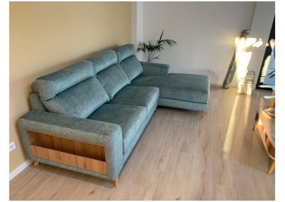- Patas altas a elegir cromadas, negras o madera para una fรกcil limpieza bajo el sofรก.