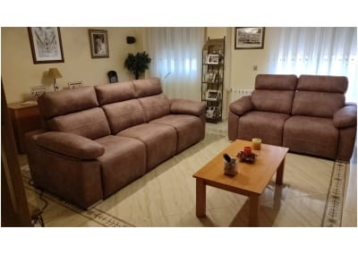 También tenemos la opción de hacer la chaislongue motorizada que alarga los pies y tumba el respaldo, para dar un plus de confort al sofá