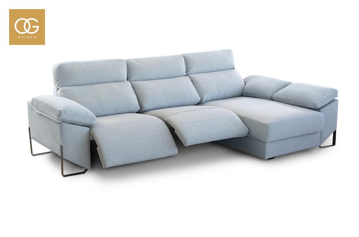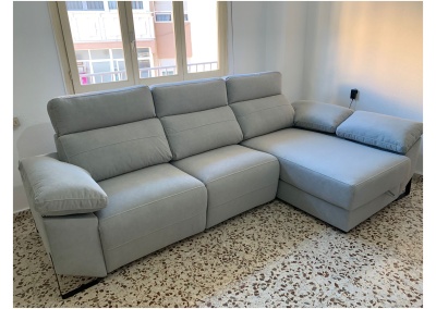 También tenemos la opción de hacer la chaislongue motorizada que alarga los pies y tumba el respaldo, para dar un plus de confort al sofá